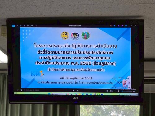 พช.ขอนแก่น : จัดประชุมเชิงปฏิบัติการการดำเนินงานตัวชี้วัดตามมาตรการปรับปรุงประสิทธิภาพในการปฏิบัติราชการ กรมการพัฒนาชุมชน ประจำปีงบประมาณ พ.ศ. 2569 (ส่วนภูมิภาค) สำนักงานพัฒนาชุมชนจังหวัดขอนแก่น