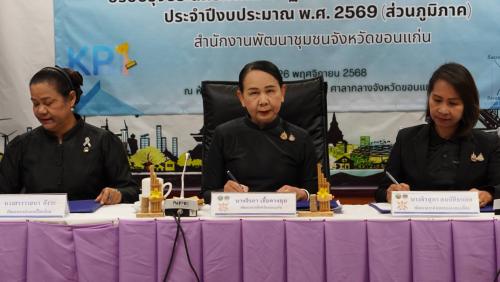 - พิธีลงนามคำรับรองการปฏิบัติราชการ กรมการพัฒนาชุมชน ประจำปี งบประมาณ พ.ศ. 2569 ระหว่างพัฒนาการจังหวัดขอนแก่น กับ ผู้อำนวยการกลุ่มงาน และพัฒนาการอำเภอ