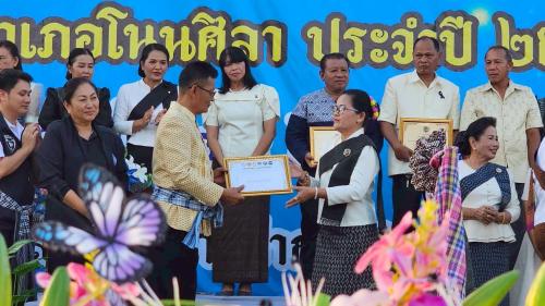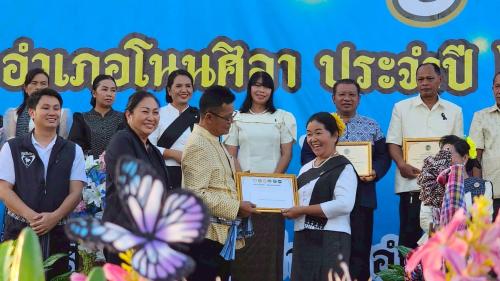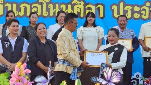 พช.โนนศิลา : จัดประกวดผ้าไหม งานเทศกาลประเพณีบุญกุ้มข้าวใหญ่โนนศิลาประจำปี 2568 นายชยพล อินทรสุภา นายอำเภอโนนศิลา เป็นประธานเปิดการประกวดผ้าไหมในงานเทศกาลประเพณีบุญกุ้มข้าวใหญ่โนนศิลาประจำปี 2568 โดยมีวัตถุประสงค์เพื่อพัฒนาศักยภาพผ้าไทย ให้มีคุณภาพเป็นที่ยอมรับ โดยใช้ภูมิปัญญาท้องถิ่น องค์ความรู้ และเทนโนโลยีสมัยใหม่ในการพัฒฯาต่อยอด สร้างรายได้เพิ่มให้กับชุมชน ในการนี้สำนักงานพัฒนาชุมชนอำเภอโนนศิลา นำโดย นาวสาวชุติมณฑน์ อุตสาหะ พัฒนาการอำเภอ เป็นเจ้าภาพในการประกวด มีผู้ที่สนใจส่งผ้าเข้าประกวดจำนวน ทั้งสิ้น 69 ผืน แบ่งออกเป็น 3 ประเภท ได้แก่ ประเภทที่ 1 ผ้าไหมลายพระราชทาน ของสมเด็จพระเจ้าลูกเธอเจ้าฟ้าสิริวัณณวรีนารีรัตนราชกัญญา รางวัลชนะเลิศ คือ นางมะลิ วงษา กลุ่มทอผ้าไหมบ้านหนองแวง รองชนะเลิศอันดับที่1 คือ นางวันวิสาข์ ศรีกระภา กลุ่มทอผ้าไหมบ้านผักหวาน รองชนะเลิศอันดับที่ 2 คือ นางนิตยา สีกา กลุ่มทอผ้าไหมบ้านนาโพธิ์ ประเภทที่ 2 ผ้าไหมลายอัตลักษณ์อำเภอโนนศิลา "ลายผ้า ศิลางาม" รางวัลชนะเลิศ คือ นางศิรินันท การมงคล กลุ่มทอผ้าไหมบ้านผักหวาน รองชนะเลิศอันดับที่1 คือ นางสาวพรทิวา ทองหล่อ กลุ่มทอผ้าไหมบ้านโนนแดงน้อย รองชนะเลิศอันดับที่ 2 คือ นางทองปิ่น มาบุดดา กลุ่มทอผ้าไหมบ้านหนองแวง ประเภทที่ 3 ผ้าไหมมัดหมี่ รางวัลชนะเลิศ คือ นางศิรินันท การมงคล กลุ่มทอผ้าไหมบ้านผักหวาน รองชนะเลิศอันดับที่1 คือ นางนิตยา สีกา กลุ่มทอผ้าไหมบ้านนาโพธิ์ รองชนะเลิศอันดับที่ 2 คือ นางบัวดี นามวงษ์ กลุ่มทอผ้าไหมบ้านถนนงาม รวมเงินรางวัลกว่า 9,000 บาท ได้ดำเนินการประกวดในวันที่ 18 ธันวาคม 2568
