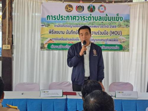 นายชยพล อินทรสุภา นายอำเภอโนนศิลา เป็นประธานในพิธีกิจกรรมประกาศวาระ และลงนามบันทึกข้อตกลงความร่วมมือ (MOU) การขับเคลื่อนตำบลเข้มแข็งตามหลักปรัชญาของเศรษฐกิจพอเพียง ประจำปีงบประมาณ พ.ศ.2569 ณ ศาลาการเปรียญวัดราษฎร์ศรัทธาสามัคคี บ้านเก่าน้อย ม.3 ตำบลเปือยใหญ่ อำเภอโนนศิลา จ.ขอนแก่น โดยมีคณะทำงานขับเคลื่อนตำบลเข้มแข็งตามหลักปรัชญาของเศรษฐกิจพอเพียง 7 ภาคีเครือข่าย ตำบลเปือยใหญ่ พร้อมด้วย หัวหน้าส่วนราชการ ทุกภาคส่วน ร่วมลงนามบันทึกข้อตกลงความร่วมมือ(MOU) เพื่อส่งเสริมให้ผู้นำ กลุ่มองค์กร ภาคีเครือข่ายและประชาชนได้เรียนรู้และน้อมนำหลักของเศรษฐกิจพอเพียงมาใช้ในการดำเนินชีวิตและนำมาปรับใช้ในการขับเคลื่อนตำบลเข้มแข็ง ตามหลักของเศรษฐกิจพอเพียงให้มีความเข้มแข็งทั้ง 3 มิติ(ด้านความมั่นคง มั่งคั่ง และด้านความยั่งยืน)